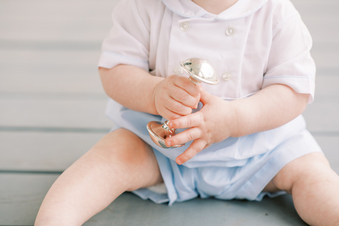 Cooper was so handsome and smiley, the camera loved him! The soft colors palette of his sweet outfit was perfect and suited him so well and the soft overcast day provided the most perfect lighting for under the porch. The cloudy sky lit up his blue eyes, they were so mesmerizing. I was amazed at how much he had grown since I saw him last at a couple weeks old at his newborn session. I loved capturing all of his adorable expressions, his gummy smile, and new tricks he had learned like clapping. I brought along some classic wooden blocks and silver rattle for him to play with and they turned out to be a big hit! Big brother tagged along so we were able to capture a handful of images of them together and they turned out so precious. I have loved getting the chance to photograph Cooper's first year of life, I photographed him at a couple weeks old, 7 months old and at almost a year. Enjoy, friends!