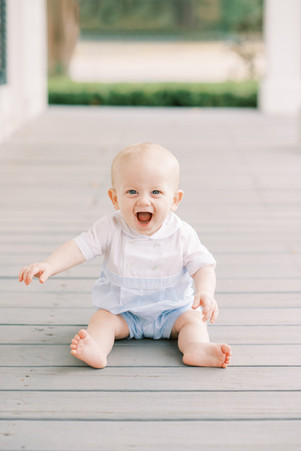 This session just makes me happy! I adore anything classic, traditional and southern when it comes to photographing babies. Bring me a cute baby in a bubble and put them on a white porch and I'm in heaven. We captured Cooper's sitter session at 7 months old at the Hughes House in Benton on the square which was the perfect backdrop for his milestone session. These were taken in September and we were blessed with perfect weather, it wasn't too hot or cold (which is rare in Louisiana! It's either one or the other, usually.)