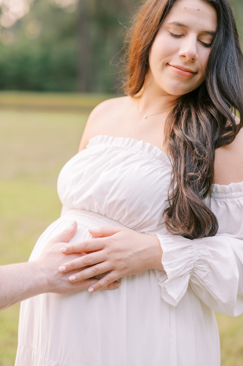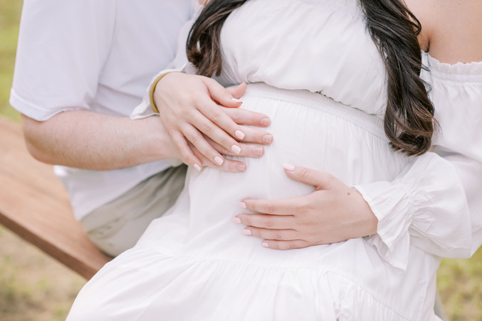 I met Isabelle and Jacob last summer for their outdoor maternity session shortly before they welcomed their first baby and they were so sweet and easy-going. I loved getting to meet them and take their maternity portraits as they prepared to enter parenthood for the first time, which is always so exciting! Isabelle looked absolutely stunning in her white gown while carrying their baby girl, Sophia. Their neutral outfits complemented the greenery so well and made them the star of the show!
