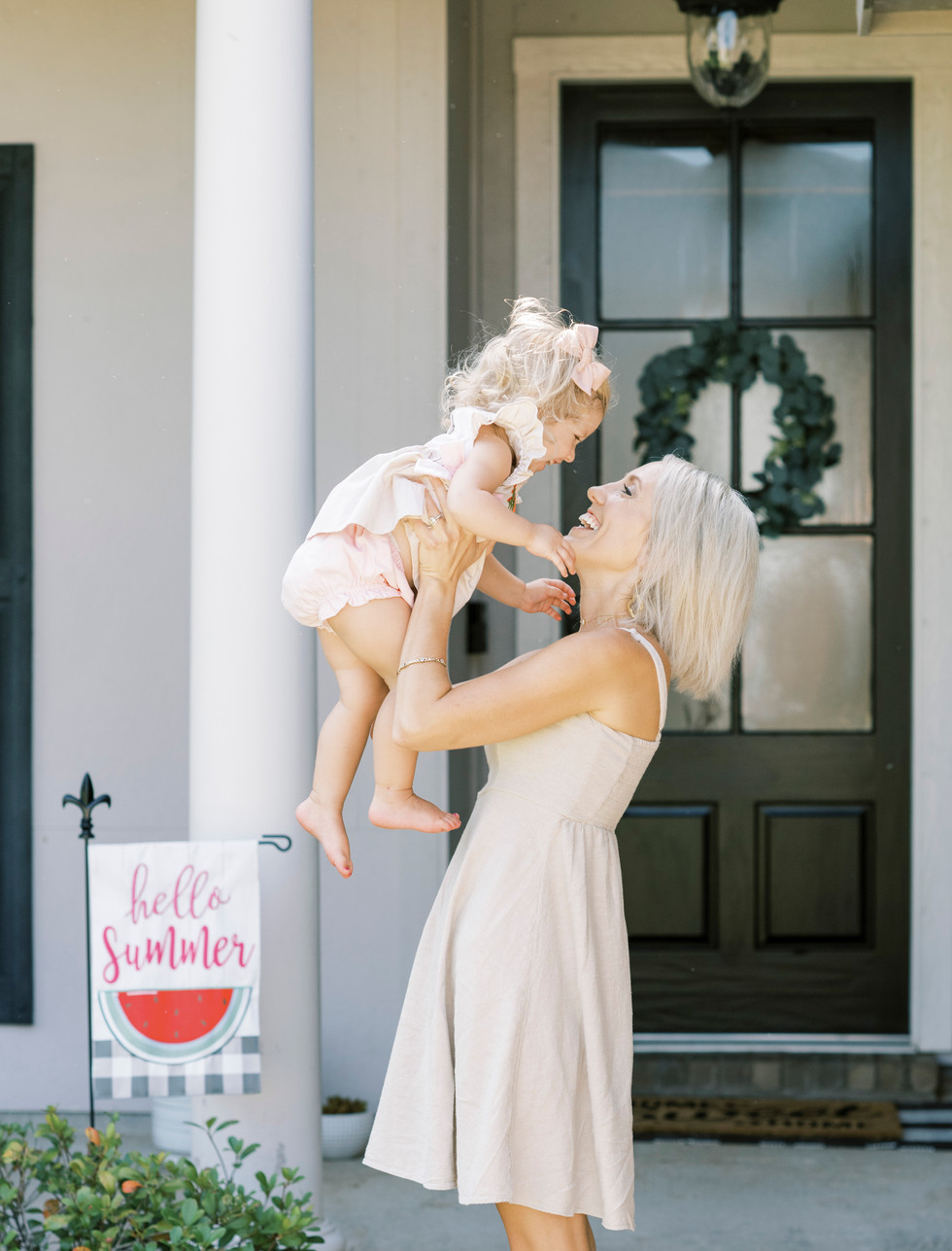 I had the honor to video this precious family for a few hours one hot July day, and it was so worth sweating buckets in the Louisiana heat! Lol. We had so fun capturing them doing all their favorite Summer activities: making a mess by baking cookies, swinging on the swing set, and finally jumping in the sprinklers to cool off! We also took some family portraits in front of their home, you can see those down below. I am so glad they will always have this little video of their old house that holds so many special memories for them. So so special and meaningful!