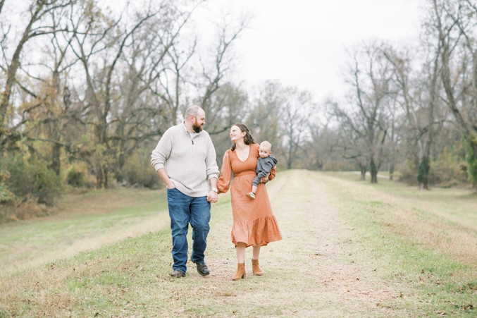 This fall day was a little overcast and drizzly, but we made the best of it and created some really beautiful and sweet images anyway! We met up at the National Red River Wildlife Refuge in Bossier, it has beautiful walking trails and trees that provide a variety of backdrops for photos. These were taken on the levee and the soft, cloudy sky just lit up James' blue eyes. I couldn't stop capturing how deep and soulful they were; he captured my heart (and my camera, hehe!) I couldn't help but share some black and white images here too, my favorite images are often in color, but I always include images in black and white as well in the final gallery.